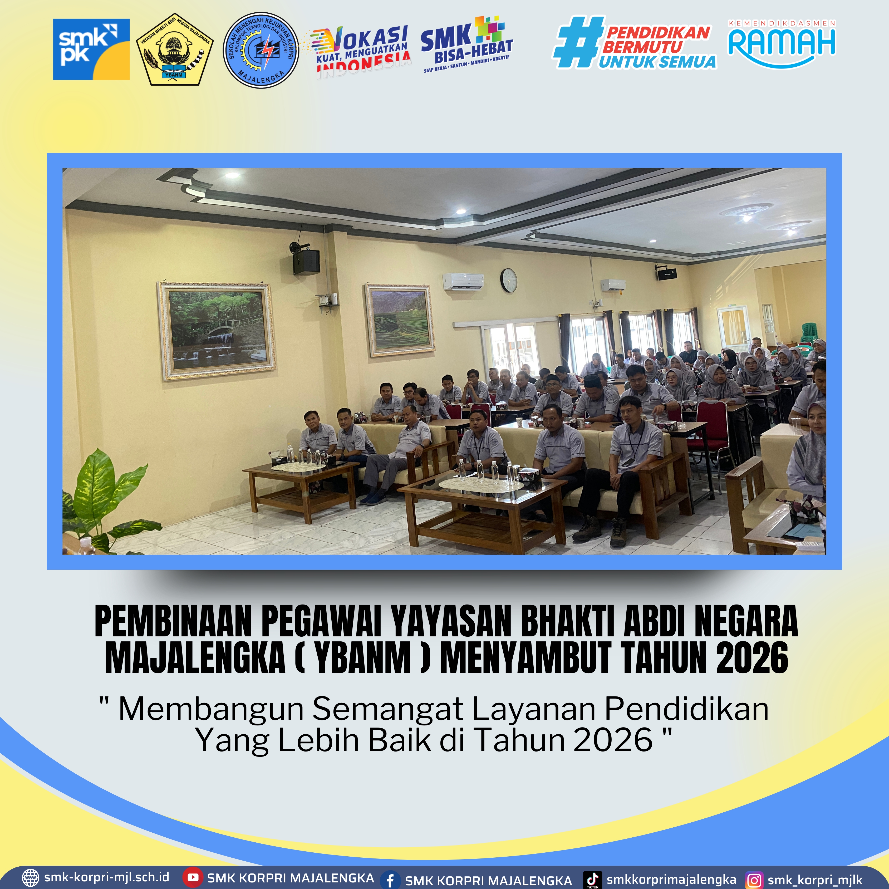 Pembinaan pegawai Yayasan Bhakti Abdi Negara Majalengk ( YBANM ) menyambut tahun 2026.dengan tema " Membangun Semangat Layanan Pendidikan Yang Lebih Baik di Tahun 2026 ".